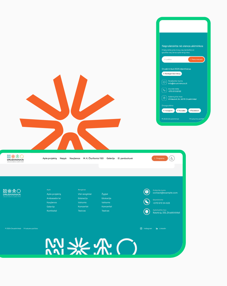 We developed the website for the Druskininkai – Lithuania’s Cultural Capital 2025 initiative together with its logo, ensuring a consistent and recognisable visual identity across all communications. The website serves as a central platform for the cultural programme, events, and news, while its clear structure and cohesive design help strengthen the initiative’s visibility, simplify information access, and build a professional, trustworthy image for both visitors and partners.
