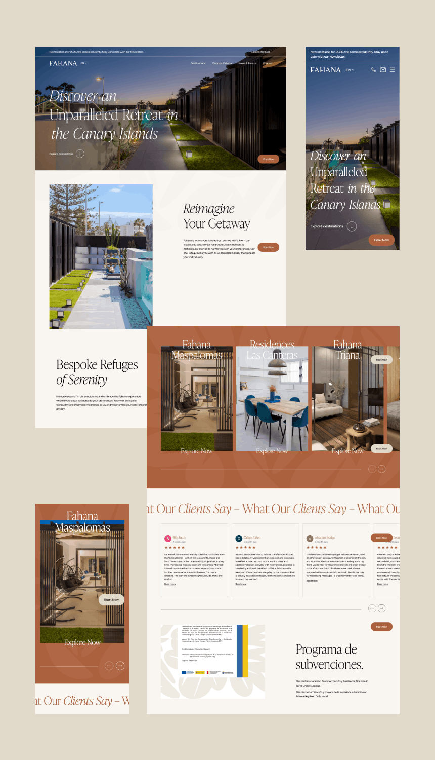We developed the Fahana Hotels website with a focus on clear structure, a smooth booking experience, and an attractive presentation of the hotel group. The website serves as a central platform for accommodation services and offers, enabling visitors to quickly find relevant information and plan their stay with ease. A modern design, consistent user journey, and clear content enhance the Fahana Hotels brand, build trust, and help convert visitors into guests more effectively.
