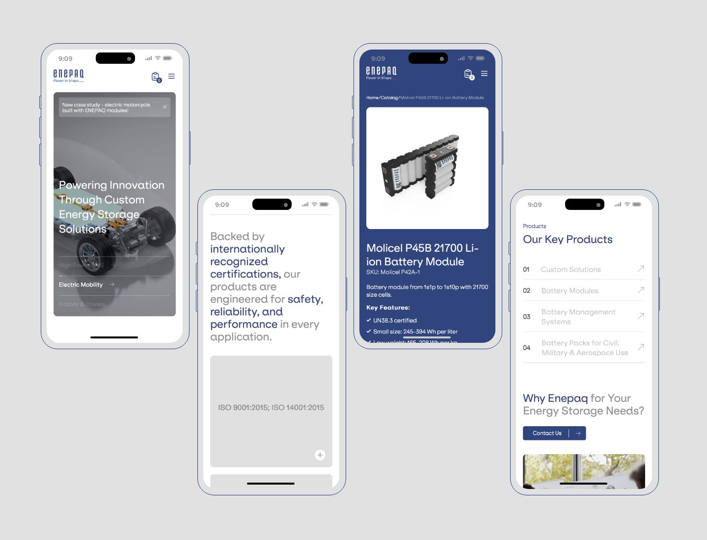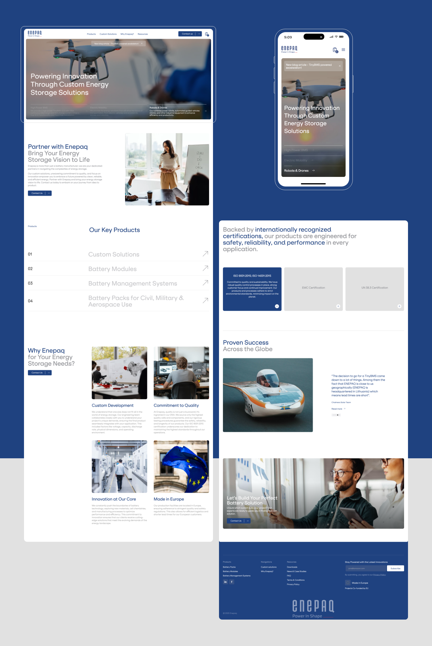 B2B produktą galima pateikti aiškiai, funkcionaliai ir pritaikant pirkėjui – kaip naujoji enepaq.com svetainė. Enepaq kuria specializuotus baterijų ir baterijų valdymo sistemų sprendimus, naudojamus dronuose, elektrinėse formulėse, autonominiuose robotuose ir kitose pažangiose technologijose. Sukūrėme svetainę, kuri šiuos kompleksinius produktus pateikia suprantamai, moderniai ir orientuojantis į realų jų pritaikymą. Profesionalus dizainas, logiška struktūra, patogi navigacija – būtent tai, ko reikia inovatyviam technologijų verslui.