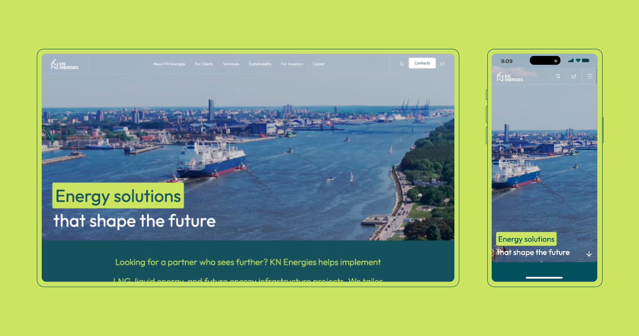Atnaujinome KN Energies interneto svetainę, kad ji aiškiau atspindėtų įmonės veiklos kryptis, kompetencijas ir strateginę reikšmę energetikos sektoriuje. Atnaujinta struktūra ir nuosekli vartotojo kelionė leidžia greičiau rasti informaciją apie paslaugas, projektus ir įmonės veiklą, o modernus dizainas stiprina profesionalų, patikimą ir tarptautiniams partneriams orientuotą KN Energies įvaizdį.